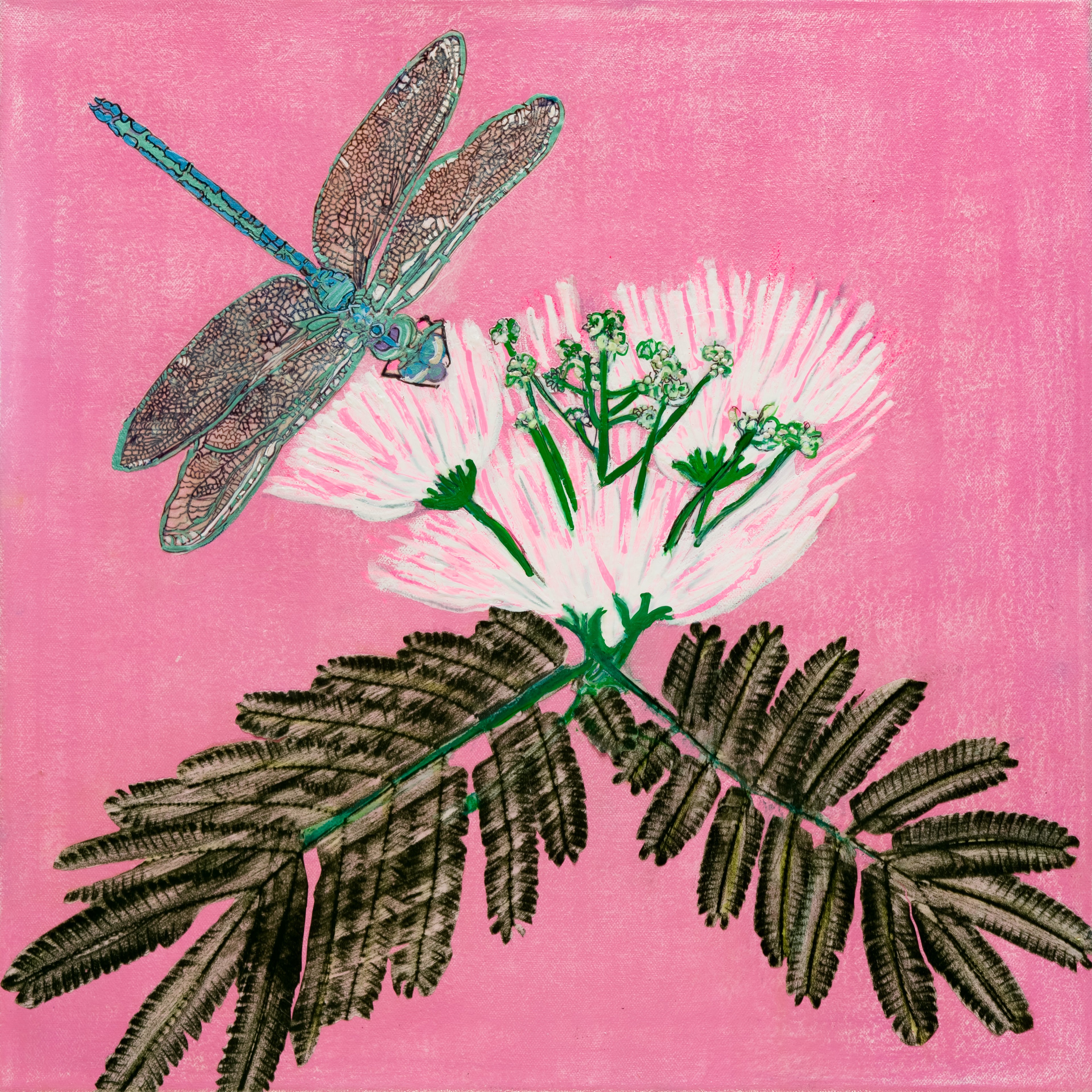 Passionately created,behold the exquisite Dragonfly on Mimosa in Pink!