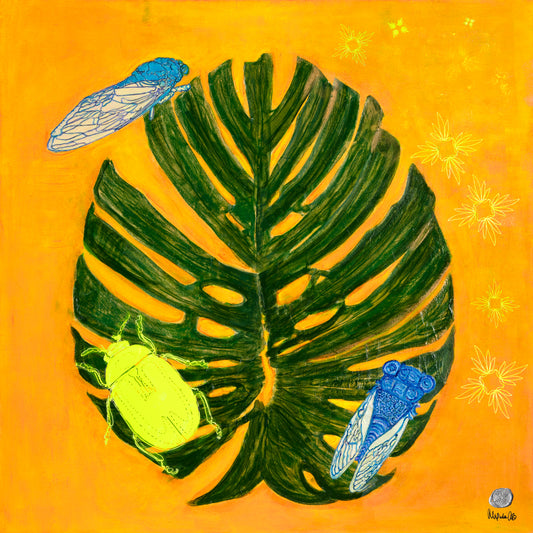 Cicadas and Junebugs on Monstera with Status Fine Art Print on Archival Paper