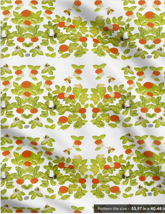 Citrus with Bees and Lovebugs on Blanc Fabric by the Yard